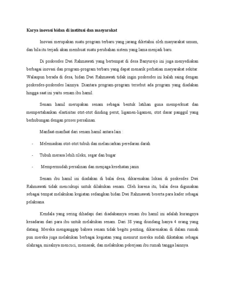 Karya Inovasi Bidan Di Institusi Dan Masyarakat Pdf